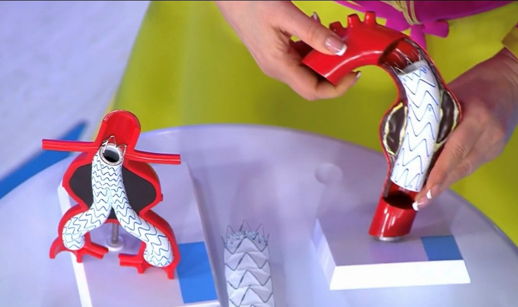 Выпуск был посвящен уникальному методу хирургического лечения — эндопротезированию аорты при патологии дуги с использованием методов интраоперационной фенестрации. В ходе обсуждения Михаил Александрович подробно рассказал о заболеваниях аорты, а именно о самом грозном из них – аневризме, о методах хирургического лечения, а также о том, почему дуга аорты является опасной локализацией, которую опасаются многие хирурги, ведь это зона от которой отходят артерии кровоснабжающие головной мозг и верхние конечности, перекрыв которые можно неизбежно получить серьезные осложнения. Михаил Александрович и Елена Васильевна наглядно продемонстрировали технологию созданию фенестраций (отверстий) в стент-графте, через которые кровоснабжаются брахиоцефальные артерии, различными методами.