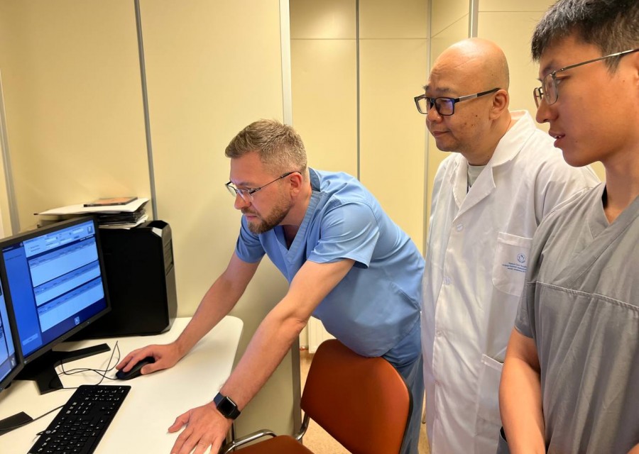 В китайскую делегацию вошли заведующий сердечно-сосудистым отделением Wang Weimin, заместитель заведующего отделения нейрохирургии Li Qingwei и врач отделения клинического питания Xu Chaorui.