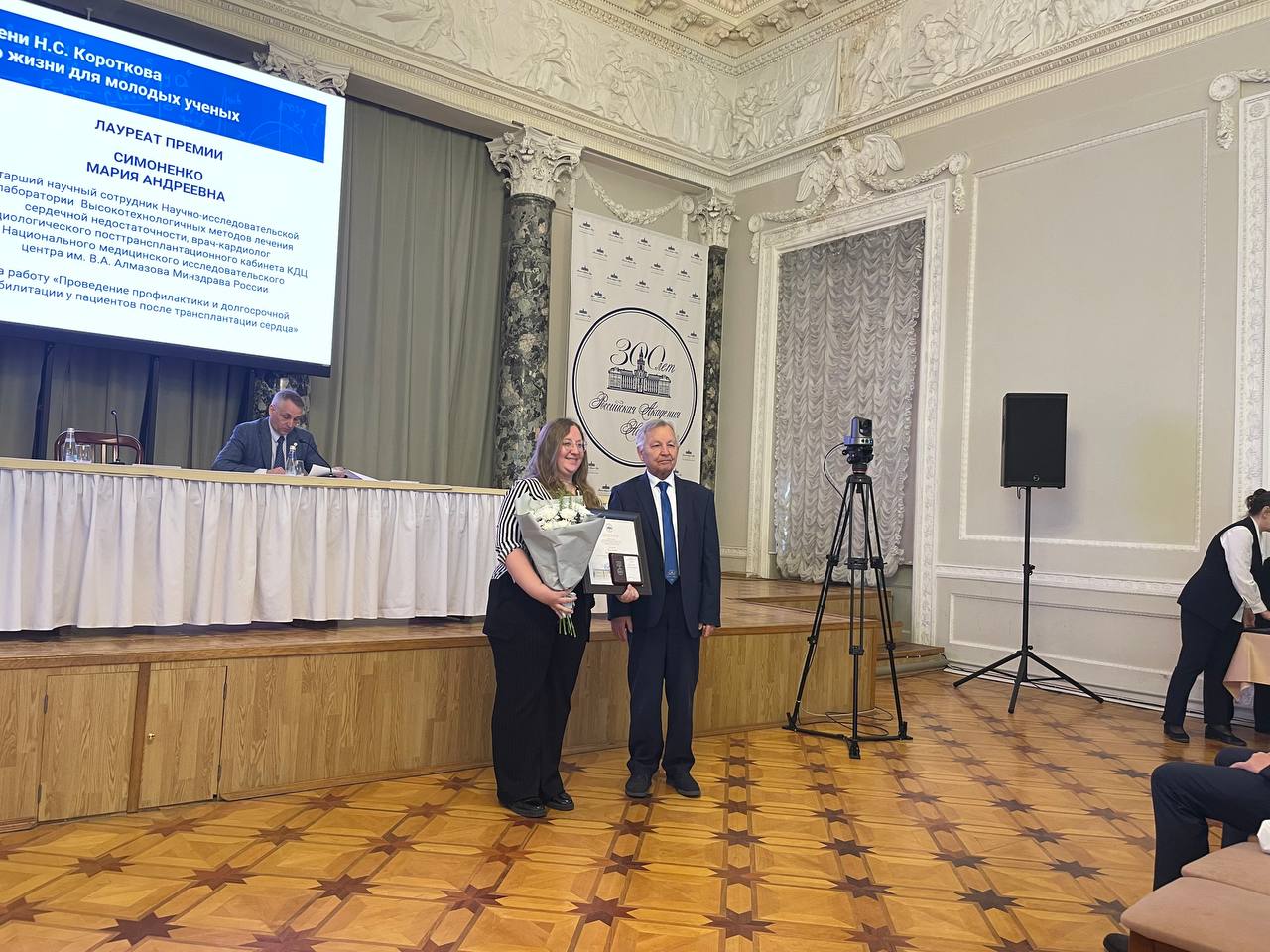 Церемония награждения лауреатов прошла 19 мая 2025 года в Санкт-Петербургском отделении РАН. Премия имени Н.С. Короткова по наукам о жизни в области медицины для молодых ученых была присуждена Симоненко Марии Андреевне за работу «Проведение профилактики и долгосрочной реабилитации у пациентов после трансплантации сердца».