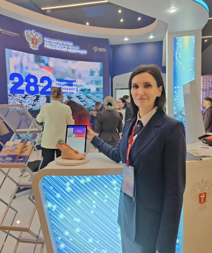 Одним из ключевых направлений программы форума выступило выставочное пространство деловой площадки ПМЭФ. Оно представляло собой уникальную локацию для построения конструктивного бизнес-диалога, поиска решений и консолидации усилий и обмена опыта между участниками. Впервые на мероприятии, на объединенном стенде Министерства Здравоохранения России, Центр Алмазова презентовал свои флагманские разработки. Так, проект по созданию системы электростимуляции и физиологического мониторинга «Умная повязка» показали научный сотрудник, врач-эндокринолог Елена Васильевна Цветкова вместе со стартап-студией Центра Алмазова и НИО сосудистой и интервенционной хирургии во главе с д.м.н. Чернявским Михаилом Александровичем. Участники также представили публике программу для ЭВМ с использованием системы ИИ для диагностики рака шейки матки.
