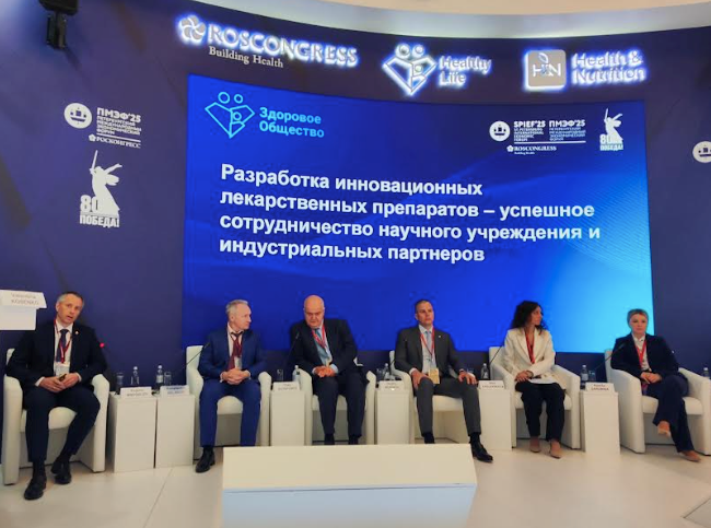 Как отметили гости и участники мероприятия, ПМЭФ в этом году значительно «помолодел». Так, 21 июня участие в молодежном треке приняли представители более 220 вузов и образовательных учреждений. В рамках сессии «Инновации в фармацевтике: Новые возможности для развития медицинских технологий» на площадке «Здоровое общество» декан факультета послевузовского и дополнительного образования Института медицинского образования Михайлов Евгений Николаевич подробно осветил основные вехи на пути становления инновационного цикла в разработке лекарственных субстанций.Он также продемонстрировал инфраструктуру и деятельность Центра Алмазова в разработке и тестирования лекарственных препаратов, таких как радиофармпрепарат на основе радиометаллов (68Ga и 177Lu) для диагностики и лечения рака предстательной железы, и реализации платформы для адаптивной CAR T CAR NK в онкогематологии, созданной для лечения острых лимфобластных лейкозов. В перечень входит и разработка трагетного пептида, RAS70 против мембраносвязанного Hsp70 на раковых клетках для интраоперационной диагностики злокачественных опухолей головного мозга, а в рамках расширения показаний для применения инновационных препаратов – пептидного ингибитора ИЛ-1 Гофликицепт ингибитора для лечения идиопатического рецидивирующего перикардита.
