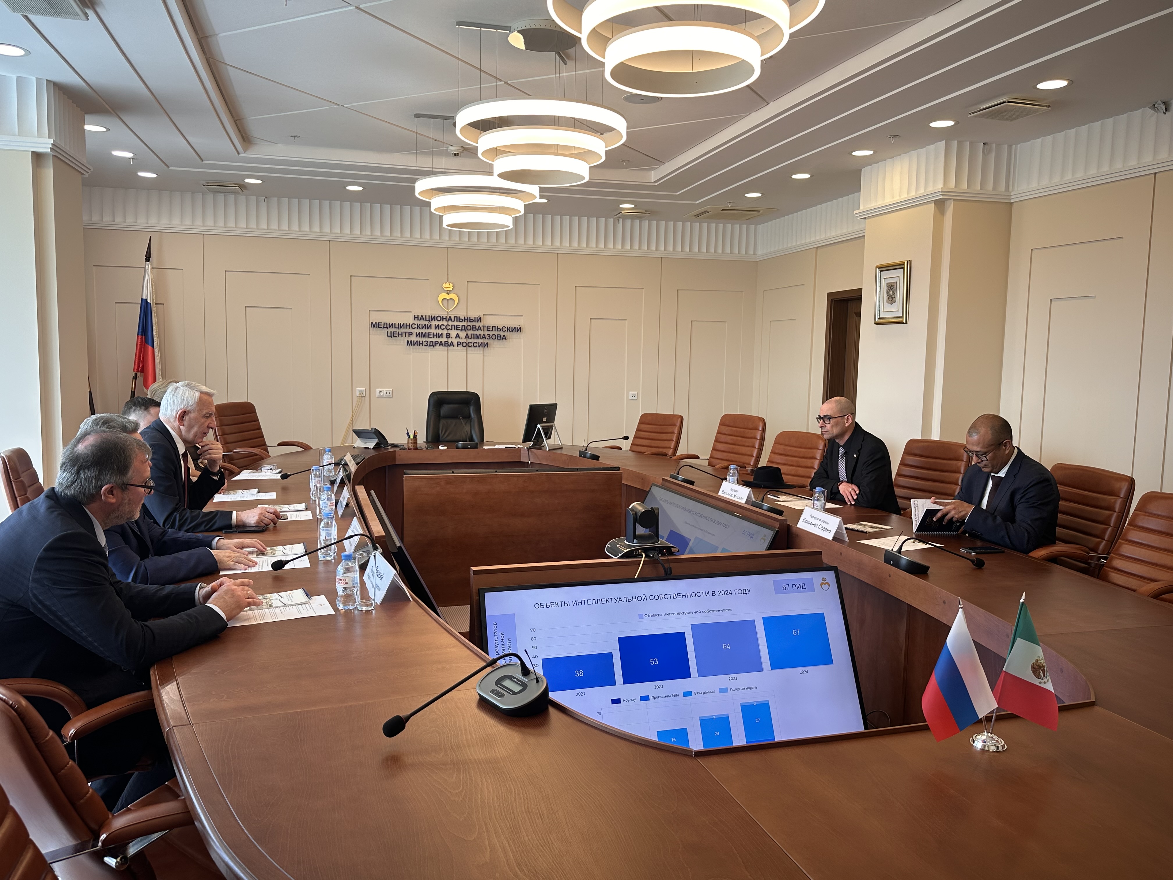 Мексиканские коллеги высоко оценили клинический и образовательный потенциал Центра Алмазова и заинтересовались возможностями научного и образовательного сотрудничества, направленного на расширение и улучшение профессиональной подготовки обучающихся медицинских ВУЗов Мексики.