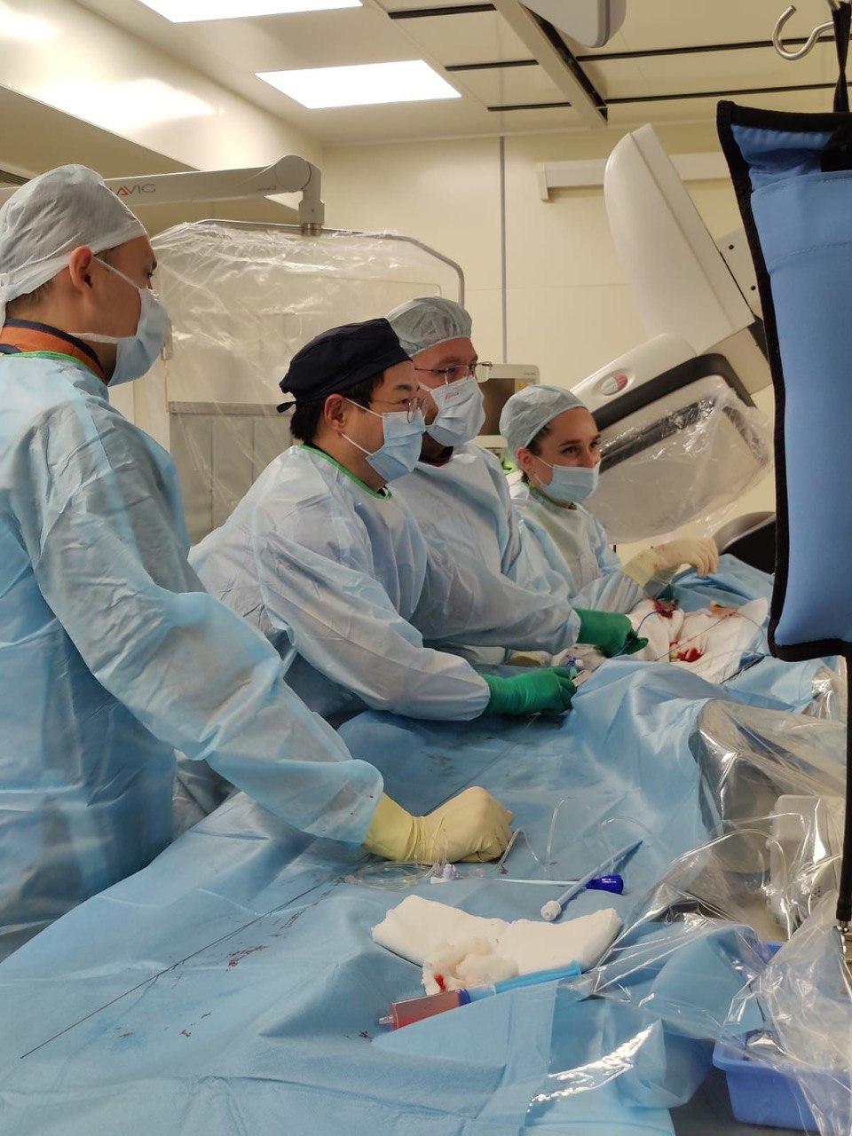 25 июня состоялся обучающий мастер-класс для врачей сердечно-сосудистых центров России под руководством заведующего НИЛ интервенционной хирургии к.м.н. Артема Викторовича Горбатых, при участии заведующего рентгеноперационной РНПЦ (Минск, Республика Беларусь) П. Ф. Черноглаза и клинического специалиста компании TaeWoong Medical г-на J. Han (Сеул, Республика Корея). Темой мероприятия стала методика транскатетерной имплантации клапана легочной артерии Pulsta.