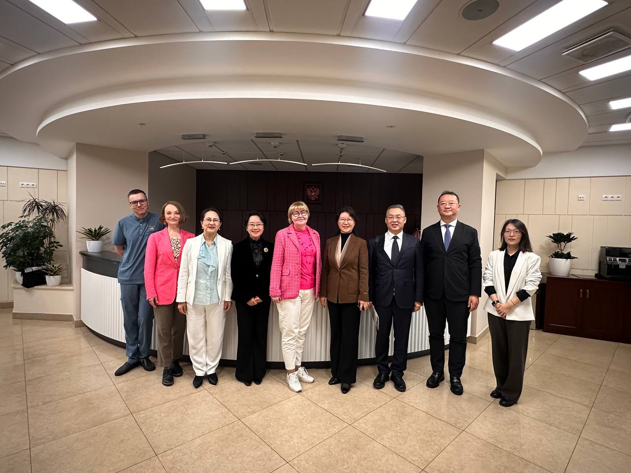 Китайская делегация посетила ситуационный центр, а также гибридную операционную, где ежегодно выполняется до 2000 операций сосудистого профиля. В гибридной операционной гостям представили гибридную установку, которая позволяет выполнять как открытые, так и гибридные операции, и другое оборудование, которое используется врачами для улучшения результатов хирургических вмешательств. Экскурсия завершилась посещением Института молекулярной биологии и генетики, где делегации презентовали основные направления работы и достижения института.
