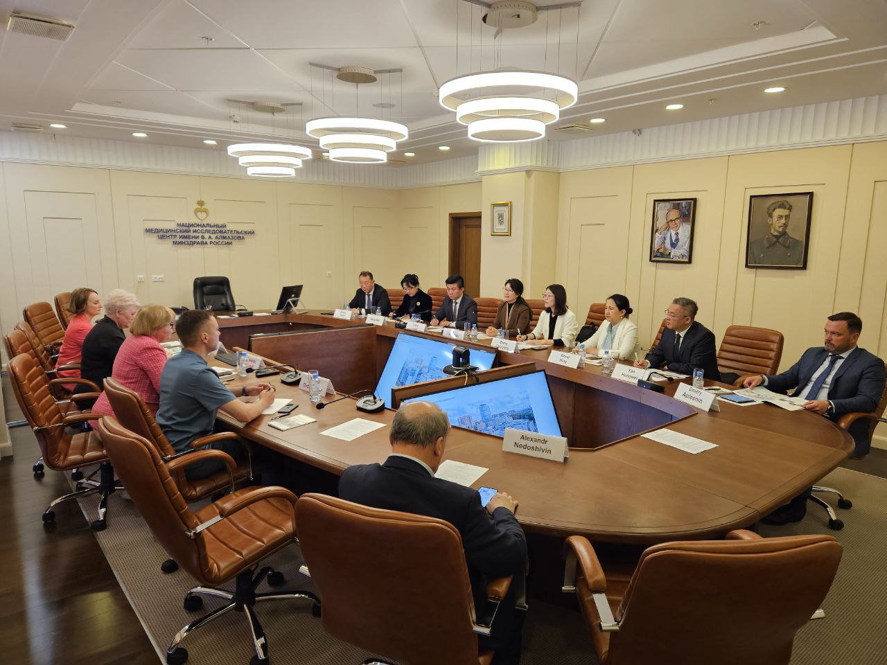 Китайская делегация Первой больницы города Харбин 1 июля 2025 года посетила ФГБУ «НМИЦ им. В. А. Алмазова» Минздрава России. Для гостей провели экскурсию по ситуационному центру, показали гибридную операционную и рассказали об истории, структуре и перспективах развития Центра Алмазова.