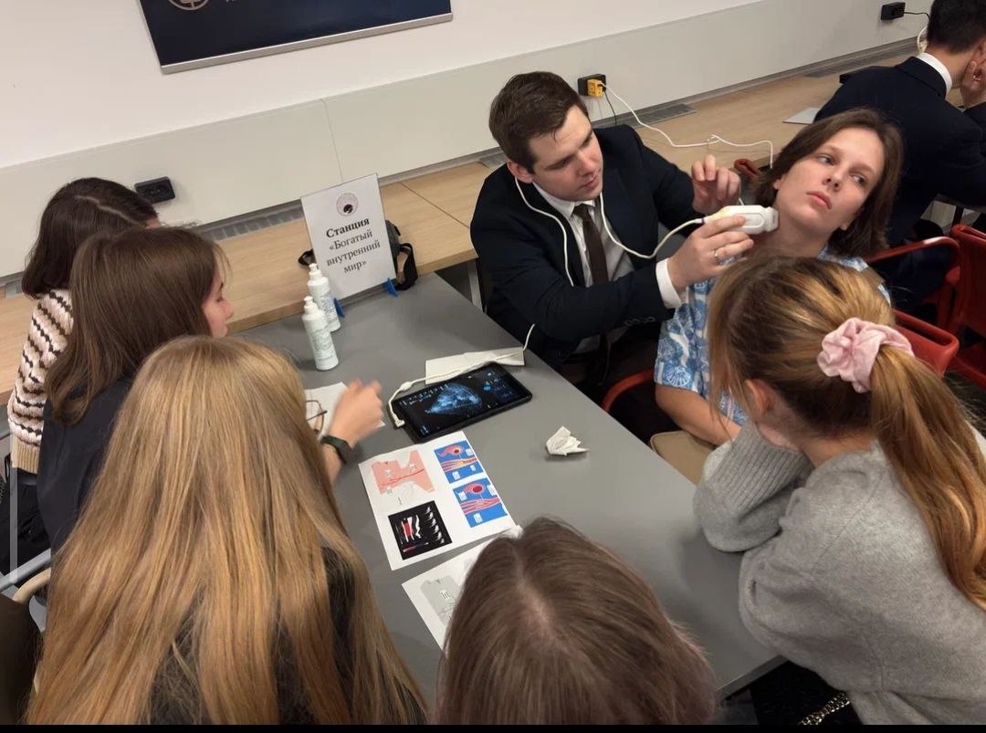 Но не только виртуальными навыками программа не ограничилась. Другие станции были полностью посвящены отработке мануальных навыков, которые участники смогли получить под руководством опытных наставников. На специальных тренажерах-симуляторах ребят учили основам десмургии основам хирургического шва, некоторые впервые взяли в руки инструменты. В станциях по обучению десмургии — накладывать различные виды повязок при различных травмах. Чтобы полностью ощутить себя в роли хирургов — ребята примеряли на себя хирургический костюм. Под руководством кардиологов, дети активно изучали строение сердечно-сосудистой системы на 3D-моделях аневризм аорты, которую можно было рассмотреть со всех сторон, и позволяла в деталях изучить анатомию сердечно-сосудистой системы. Завершился интенсив мастер-классом по ультразвуковой диагностике. Используя портативного УЗИ-аппарата старшеклассники учились находить на экране основные органы и сосуды, постигая азы одной из самых востребованных диагностических методик.