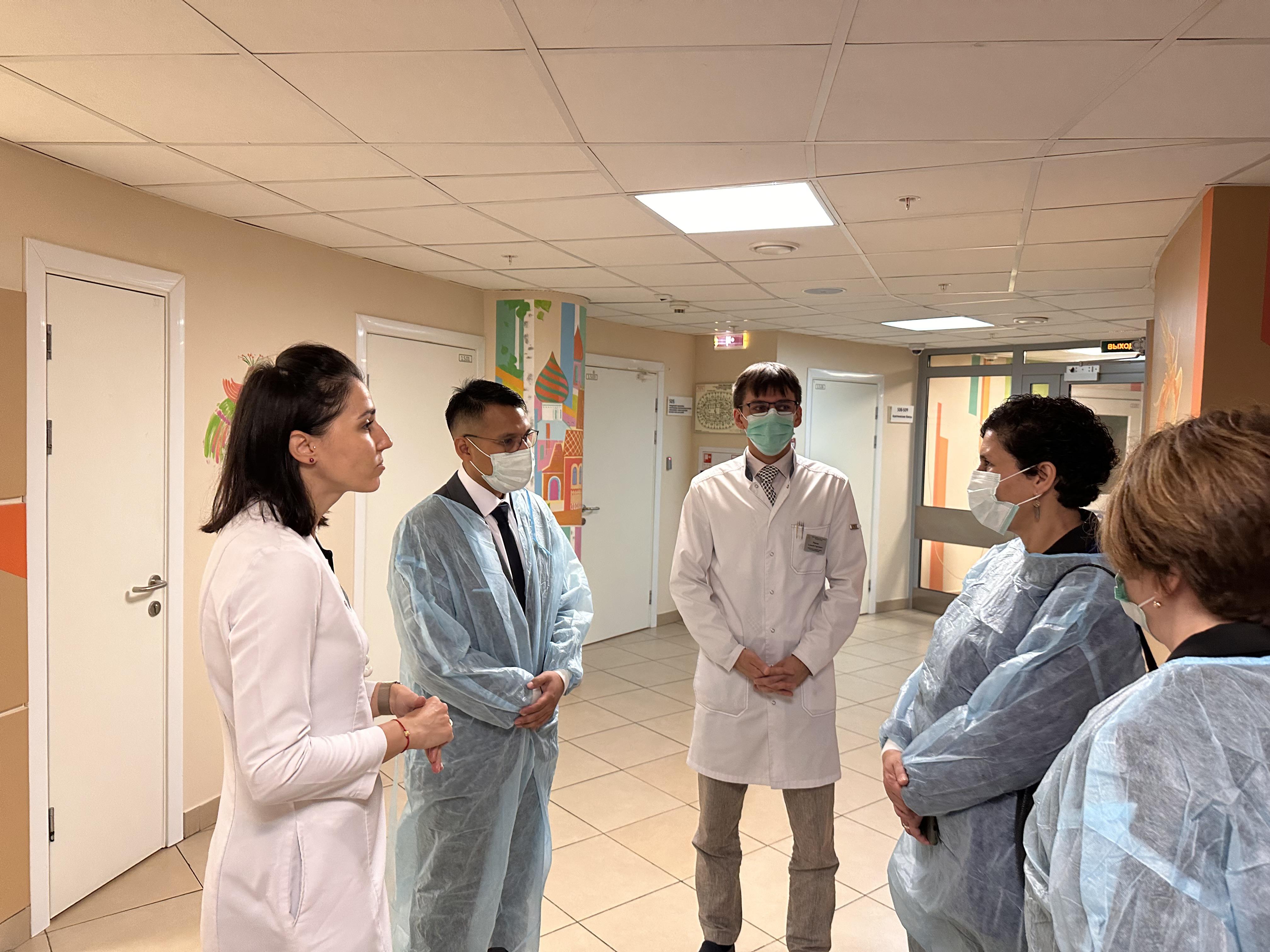 Для г-жи Лалии Гонсалес Корнелио была организована экскурсия, в ходе которой она ознакомилась с отделением реанимации и интенсивной терапии, отделением детской онкогематологии, а также гибридной операционной. Представитель Посольства Доминиканской Республики отметила высокий уровень организации деятельности подразделений Центра Алмазова и эффективность их работы.