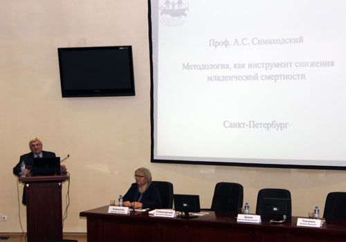 Анатолий Семенович отметил, что на сегодня показатель младенческой смертности в Санкт-Петербурге является одним из самых низких среди всех субъектов Российской Федерации — в районе 4,4% на 2013 год. Город не только хорошо оснащен медицинским оборудованием, в нем работают, действительно, высококвалифицированные специалисты, которые уже подошли к внутриутробному оперированию младенцев. Конечно, очень важным фактором в развитии медицины и снижении смертности является, по словам докладчика, методологический, системный подход, включающий усилия государства на повышение социально-экономического уровня жизни, системы экстренной помощи новорожденным, многопрофильные стационары для эффективной терапии новорожденных и ранней профилактики инвалидности, высокую организацию лечебного процесса, хорошую оснащенность стационаров оборудованием, медикаментами, квалифицированным персоналом.