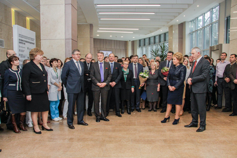 26 ноября 2015 года Председатель попечительского совета Центра Алмазова Председатель Совета Федерации Федерального Собрания Российской Федерации Валентина Ивановна Матвиенко торжественно открыла Лечебно-реабилитационный комплекс № 2.