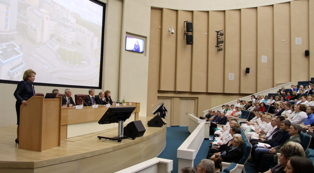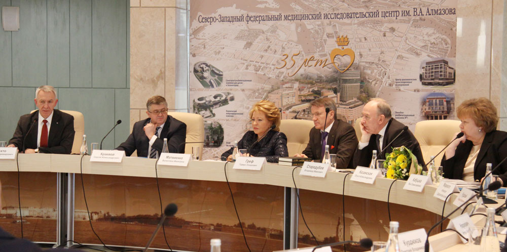 В. И. Матвиенко открыла заседание Попечительского совета словами благодарности к руководству и коллективу Центра за быструю реализацию решений совета от июня 2014 года и отметила, что Центр в последние годы стремительно развивается по всем направлениям: в области научных достижений, лечебной длительности и образования. В. И. Матвиенко отметила, что подготовка кадров в здравоохранении в настоящее время является первоочередной задачей, от реализации которой зависит повышение качества медицинской помощи населению.