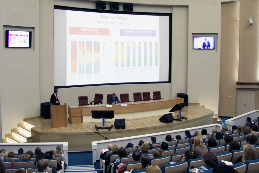 В течение трех дней параллельно сразу в нескольких залах СЗФМИЦ им. В. А. Алмазова были организованы лекции и научные симпозиумы. Темами докладов в этом году стали наиболее актуальные вопросы в кардиологии, такие как ишемическая болезнь сердца, острый коронарный синдром, кардиомиопатии, инфекционный эндокардит, врожденные пороки сердца и катетерная имплантация аортального клапана. Специалисты рассмотрели конкретные клинические случаи, а также проанализировали рекомендации Европейского кардиологического общества. Своим опытом и знаниями поделились профессора, академики и кандидаты медицинских наук из России, Франции, Швейцарии и Нидерландов.