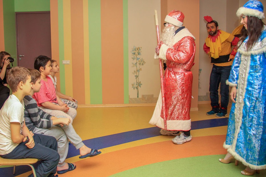 После веселых игр, песен и хороводов ребята смогли на время забыть о своих проблемах со здоровьем и радоваться празднику. К тем, кто не смог прийти на праздник, гости пришли прямо в палату.