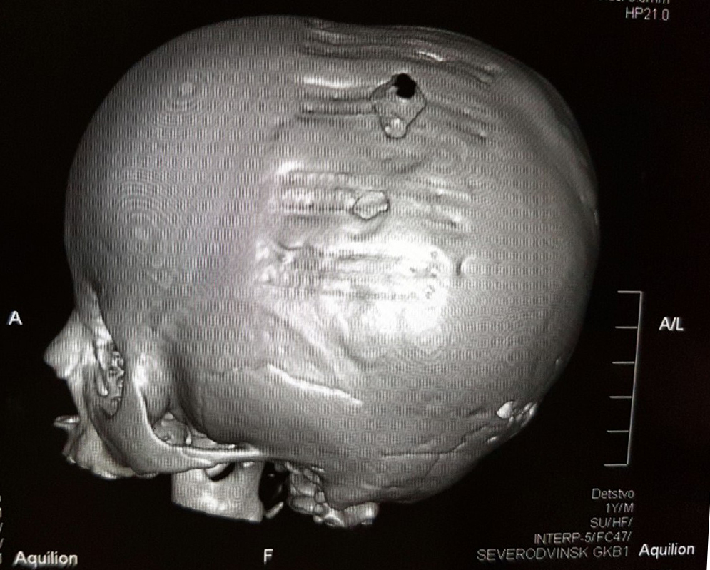 Сложнейшие оперативные вмешательства потребовались малышу, у которого после рождения преждевременно закрылись сразу два черепных шва. Сочетанное зарастание именно сагиттального и ламбдовидного швов встречается крайне редко: менее 1% от общего числа данного заболевания. Патология вызвала грубейшую деформацию черепа, у новорожденного очень рано развилось несоответствие размеров черепа объему быстро растущего головного мозга.
