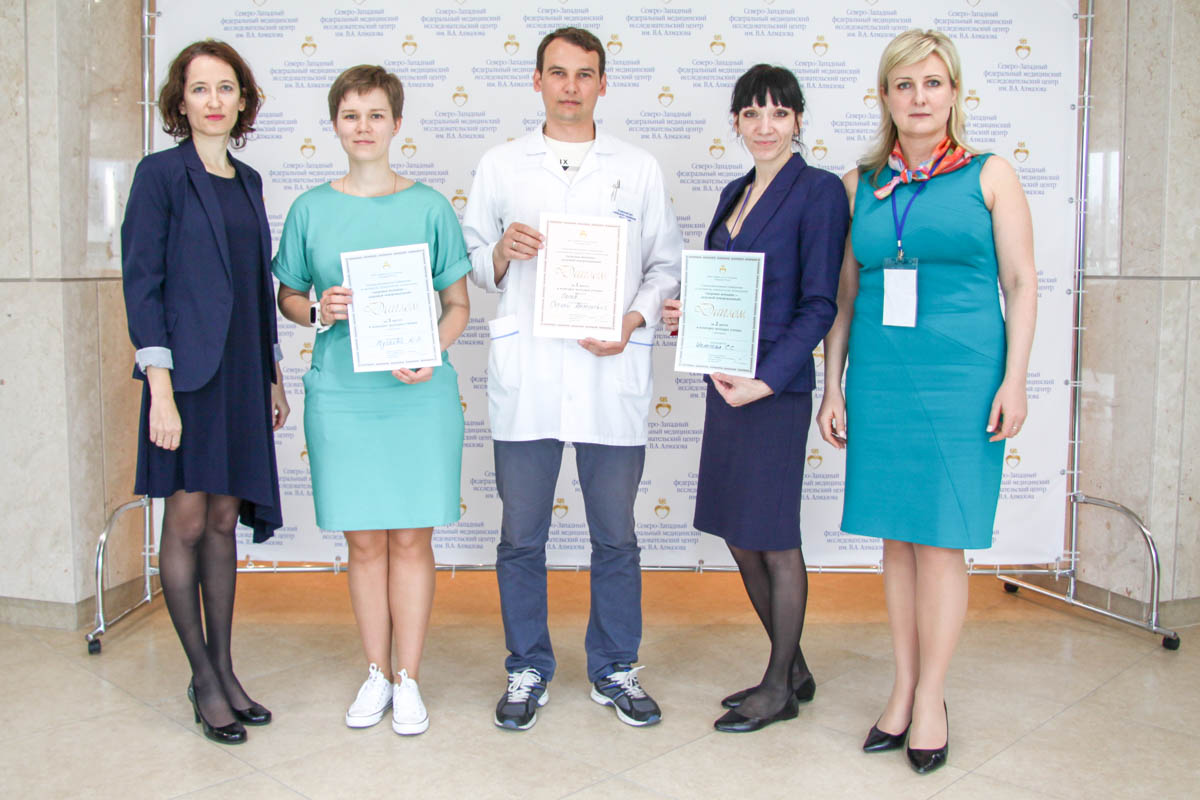 Члены конкурсной комиссии — заведующая НИЛ диагностики и лечения патологии детского возраста, к. м. н. Ирина Александровна Леонова и ведущий научный сотрудник НИЛ кардиомиопатий, к. м. н. Ольга Борисовна Иртюга наградили победителей.