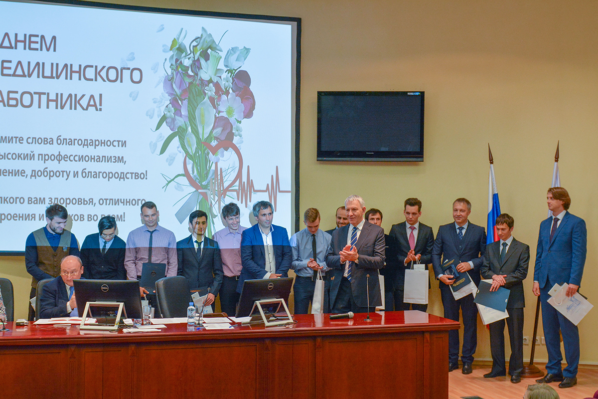 Евгений Владимирович Шляхто особо отметил достижения футбольной команды Центра Алмазова, которая стала серебряным призером турнира «Большой футбол» среди медицинских учреждений Санкт-Петербурга, посвященного Дню медицинского работника 2017. Каждый член команды был награжден почетной грамотой и памятным подарком.