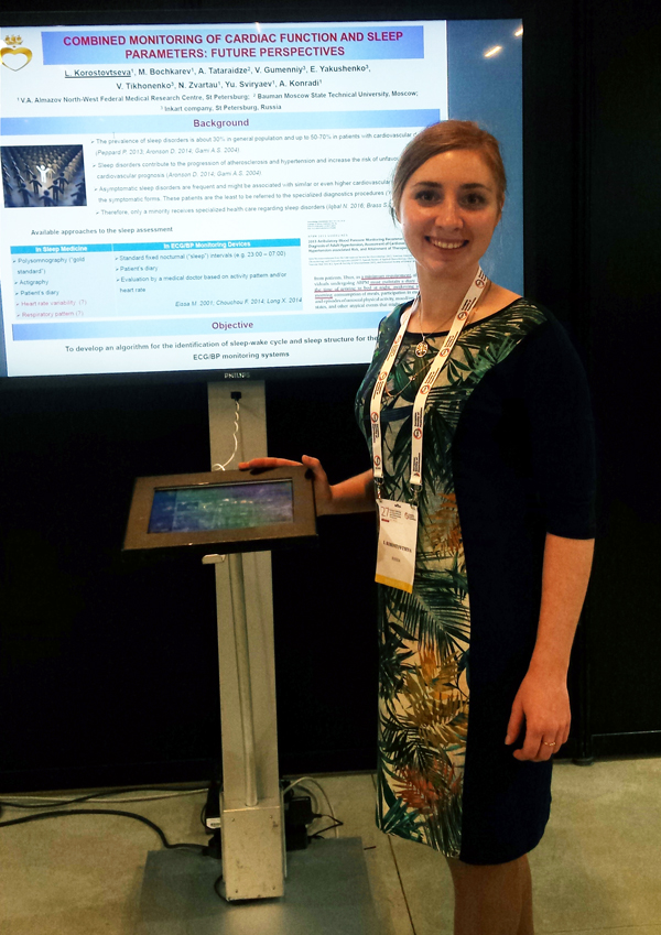 Врач-кардиолог, сотрудник группы по сомнологии, к. м. н. Л. С. Коростовцева выступила с докладом на тему «Сочетанное мониторирование параметров сердечно-сосудистой системы и сна: перспективы применения».