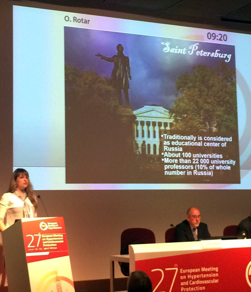 Руководитель отдела эпидемиологии сердечно-сосудистых заболеваний, д. м. н. О. П. Ротарь представила данные проведенного исследования среди профессорского состава.