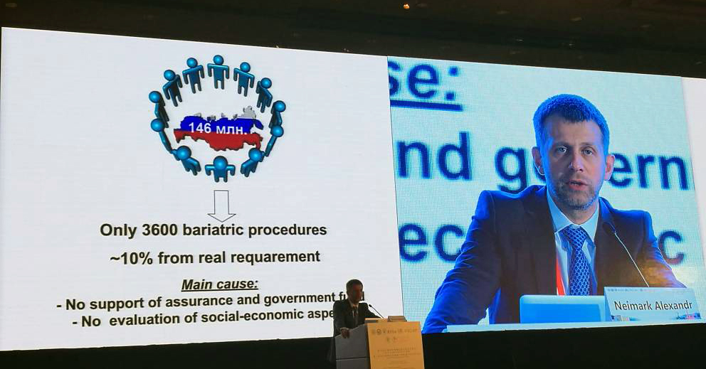 На конгрессе как приглашенный лектор, а также как член Исполнительного совета IFSO и представитель от РФ выступил заведующий научно-исследовательской лаборатории хирургической коррекции метаболических нарушений Национального медицинского исследовательского центра имени В. А. Алмазова, к.м.н. Александр Евгеньевич Неймарк.