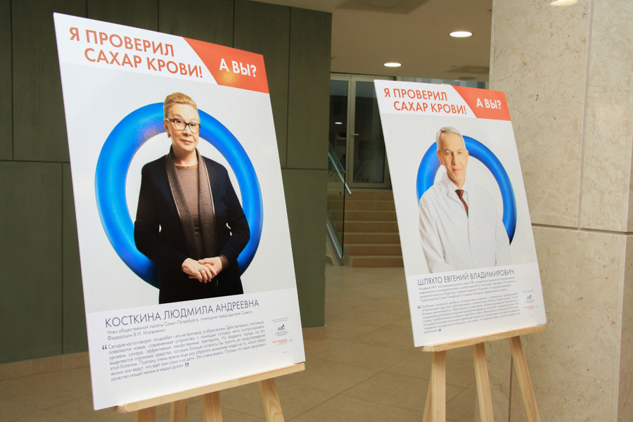 В масштабном просветительском фотопроекте«Я проверил сахар крови! А Вы?»приняли участие вице-губернатор Санкт-Петербурга А. В. Митянина, генеральный директор НМИЦ имени В. А. Алмазова, академик РАН, главный кардиолог Санкт-Петербурга и Северо-Западного федерального округа Е. В. Шляхто, О. Н. Тер-Минасова, И. А. Карпова, Е. Б. Башнина, а также Светлана Журова, Константин Цзю, Светлана Сорокина, Ирина Пегова, Мария Киселева, Антон Беляев, Евгений Сатановский и другие деятели искусства, культуры, спорта и науки. С плакатов известные люди призывают россиян регулярно проверять уровень сахара крови, потому что именно так можно вовремя узнать о заболевании. Практически под каждым фото — своя краткая история, связанная с сахарным диабетом. И это неслучайно, ведь каждый четвертый россиянин либо болен сахарным диабетом, либо имеет риск его развития.