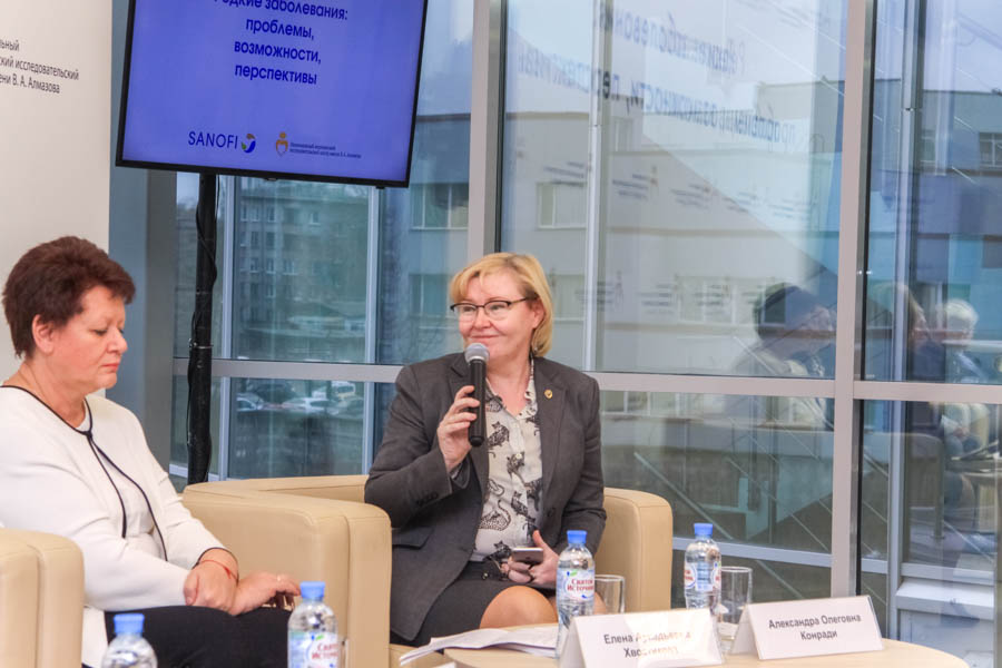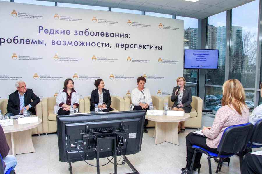 16 ноября в Центре Алмазова состоялась пресс-конференция «Редкие заболевания: проблемы, возможности, перспективы». Участие в мероприятии приняли главный внештатный специалист по медицинской генетике Минздрава России Сергей Иванович Куцев, заместитель генерального директора по научной работе НМИЦ имени В. А. Алмазова Александра Олеговна Конради, директор Института перинатологии и педиатрии НМИЦ имени В. А. Алмазова Татьяна Михайловна Первунина, и. о. главного врача СПб ГКУЗ МГЦ Константин Павлович Карпов, заведующая лабораторией наследственных болезней обмена веществ ФГБНУ МГНЦ РФ Екатерина Юрьевна Захарова, директор пациентской организации «Геном» Елена Аркадьевна Хвостикова, менеджер по политике в области здравоохранении и связям с органами государственной власти компании «Санофи» Ирина Витальевна Зарочинцева.