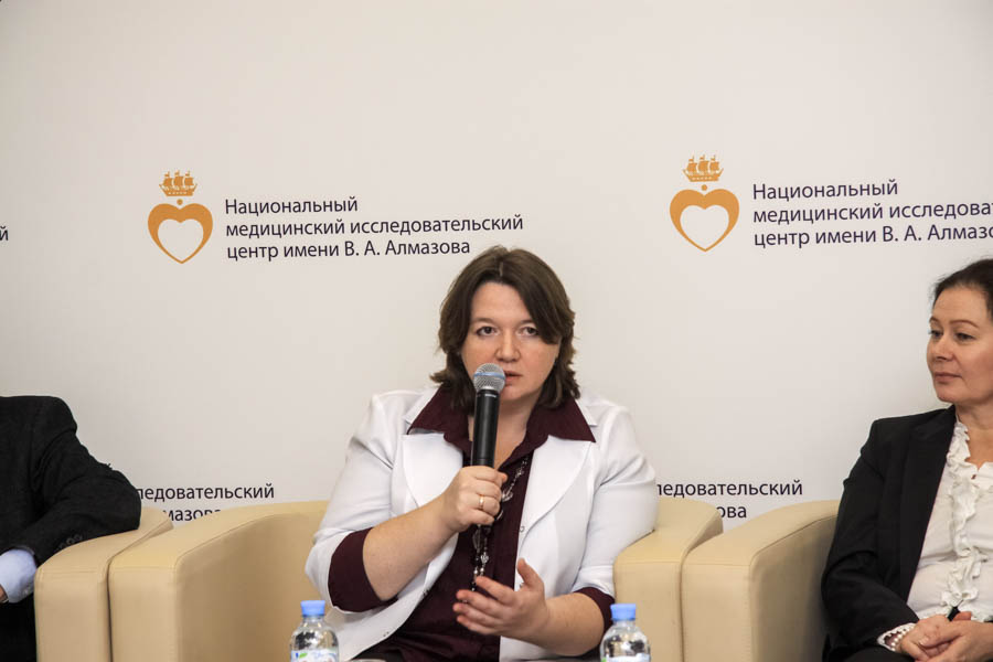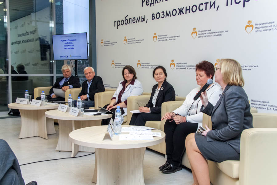 О возможностях Центра Алмазова в работе с пациентами с редкими заболеваниями и важности создания новых центров диагностики, лечения и реабилитации рассказала Т. М. Первунина. Мультидисциплинарный и одновременно персонифицированный подход к пациенту, создание этапности в оказании специализированной, в т. ч. высокотехнологичной медицинской помощи в рамках одного многопрофильного центра позволяют учреждению осваивать новое направление деятельности. При этом есть возможность преемственности в ведении пациентов с орфанными заболеваниями – от пренатального периода до 18 лет в рамках Перинатального центра и Детского лечебно-реабилитационного комплекса, а затем в условиях отделений для взрослого возраста.