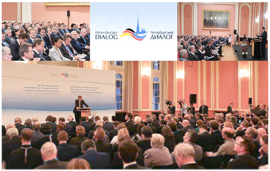 23-24 ноября 2017 года в Берлине состоялся XVI российско-германский форум общественности «Петербургский диалог». Представительный форум объединяет парламентариев, общественных и религиозных деятелей, учёных, мастеров культуры и искусства, журналистов и предпринимателей и пользуется значительным авторитетом в России и Германии.