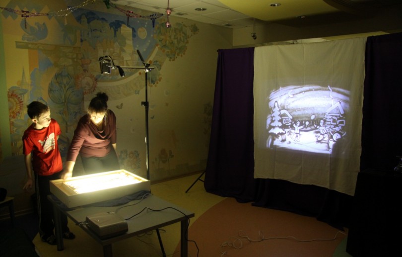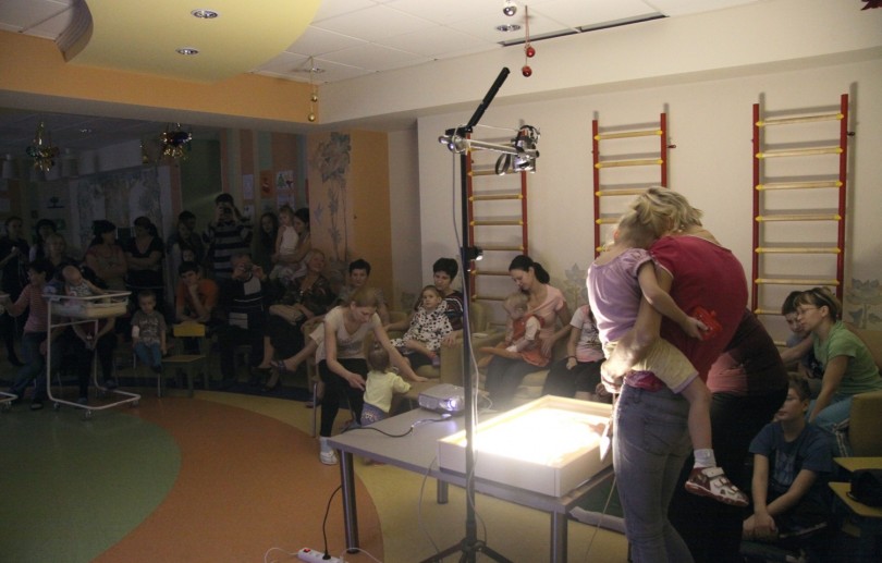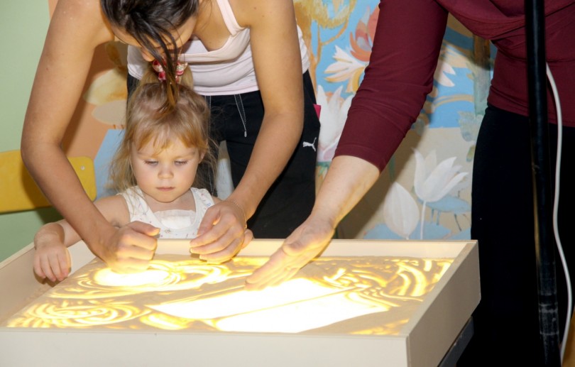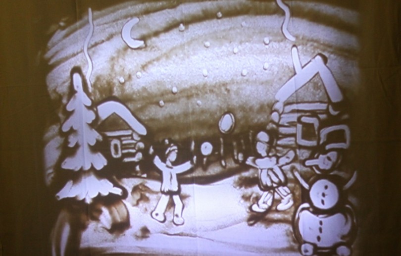 Сильное впечатление на всех посетителей детской игровой комнаты произвело песочное шоу. С замиранием сердца взрослые и дети смотрели на то, как «из ниоткуда» возникают один за другим рисунки на песке. Движущиеся живые картины сменяли друг друга: пальмы становились лебедями, лебеди рыбками, рыбки заснеженной деревней с новогодней елкой. Картины стремительно менялись, оставляя лишь воспоминания подобно тому, как исчезает след на песке. Каждый желающий от мала до велика стал непосредственным участником процесса создания картин и смог почувствовать себя настоящим художником.