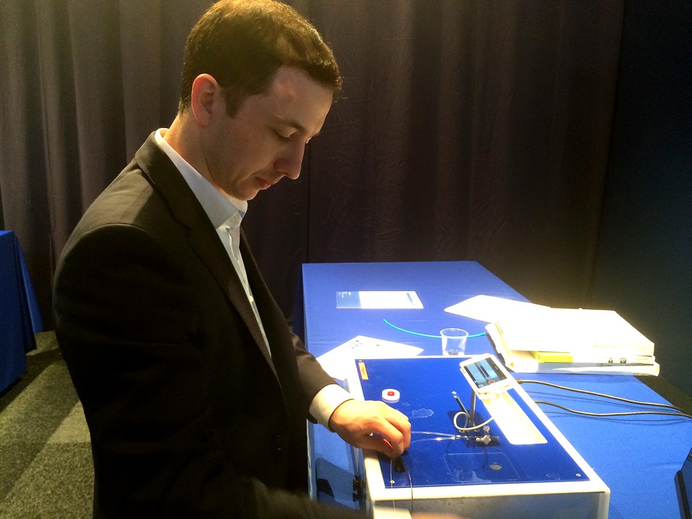 Н. Н. Жердев осматривает представленный на выставке прибор