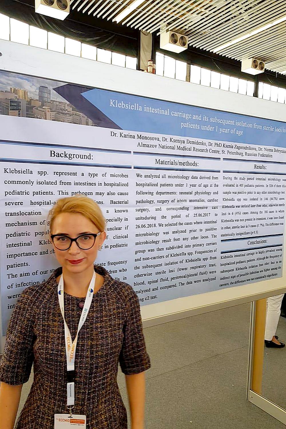 Ранее врач-клинический фармаколог к.м.н. Карина Игоревна Моносова представила работу отдела двумя постерными докладами на Конгрессе Европейской ассоциации по клинической микробиологии и инфекционным болезням (ESCMID).