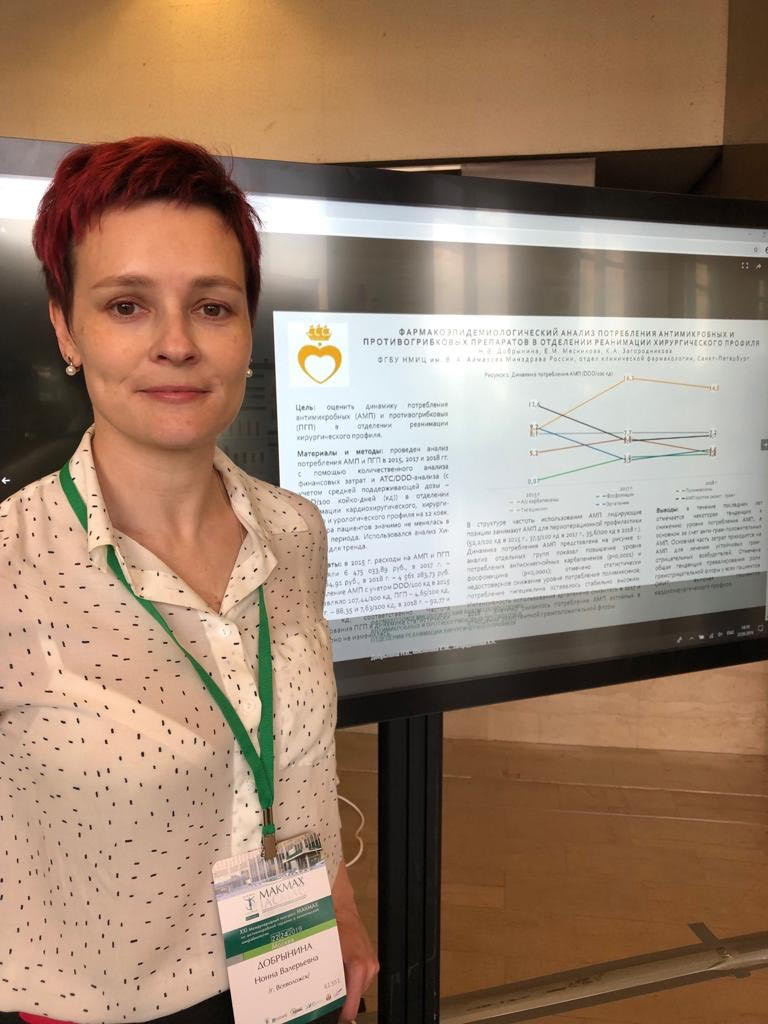 Врач-клинический фармаколог Нонна Валерьевна Добрынина представила постерный доклад «Фармакоэпидемиологический анализ потребления антимикробных и противогрибковых препаратов в отделениях реанимации хирургического профиля» на XXI Международном конгрессе МАКМАХ/ESCMID, который проходит в 22-24 мая в Москве.