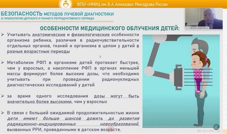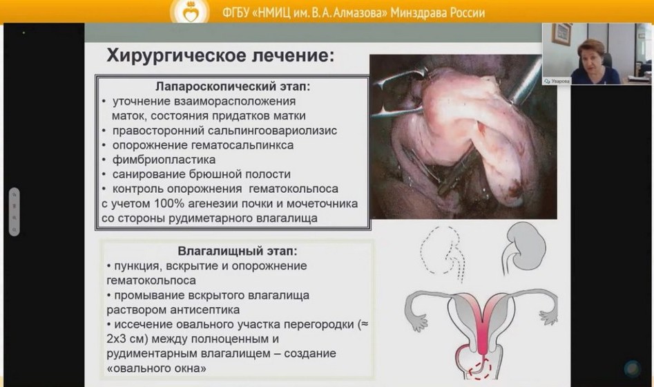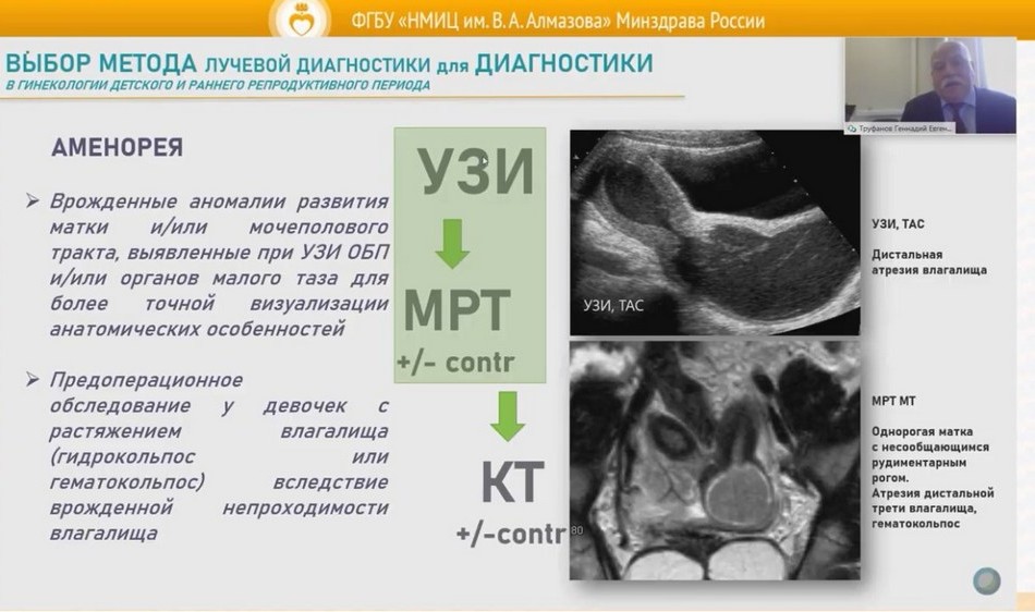 Тематика первого модуля конференции продемонстрировала, что современная детская гинекология представляет собой систему синтетических знаний, и только мультидисциплинарный подход обеспечивает эффективное и качественное оказание помощи девочкам с гинекологическими заболеваниями. Заведующий кафедрой лучевой диагностики и медицинской визуализации Г. Е. Труфанов не только представил возможности современных технических средств медицинской визуализации, но и обратил внимание на принципы их рационального использования. Директор клиник Центра Алмазова д.м.н. Э. В. Комличенко, освещая тему робот-ассистированной хирургии в детской гинекологии, особый акцент сделал на особенностях применения этой технологии у девочек с пороками и опухолевыми заболеваниями тела матки. Бесценным опытом по ведению девочек с пороками половых органов поделилась главный специалист Минздрава России по гинекологии детского и юношеского возраста, заслуженный деятель науки, чл. -корр. РАН, профессор Е. В. Уварова. Фундаментальные и практические достижения в сохранении фертильности девочек с онкологическими заболеваниями были представлены главным научным сотрудником НИЛ репродуктивных технологий Института перинатологии и педиатрии Центра Алмазова Е. А. Ульрих. О реализации принципов ценностной медицины в практику отделения гинекологии для подростков клиники Института перинатологии и педиатрии и итогах трехлетней работы рассказала заведующий гинекологическим отделением для подростков д.м.н. Н. А. Кохреидзе Также был заслушан доклад О. В. Буклиновой, заведующей отделом организации высокотехнологичных методов лечения, показавшей, что даже в условиях пандемии COVID-19 Центр Алмазова не прекращал работу по организации санаторно-курортного лечения своих пациентов, в том числе девочек с заболеваниями системы репродукции.