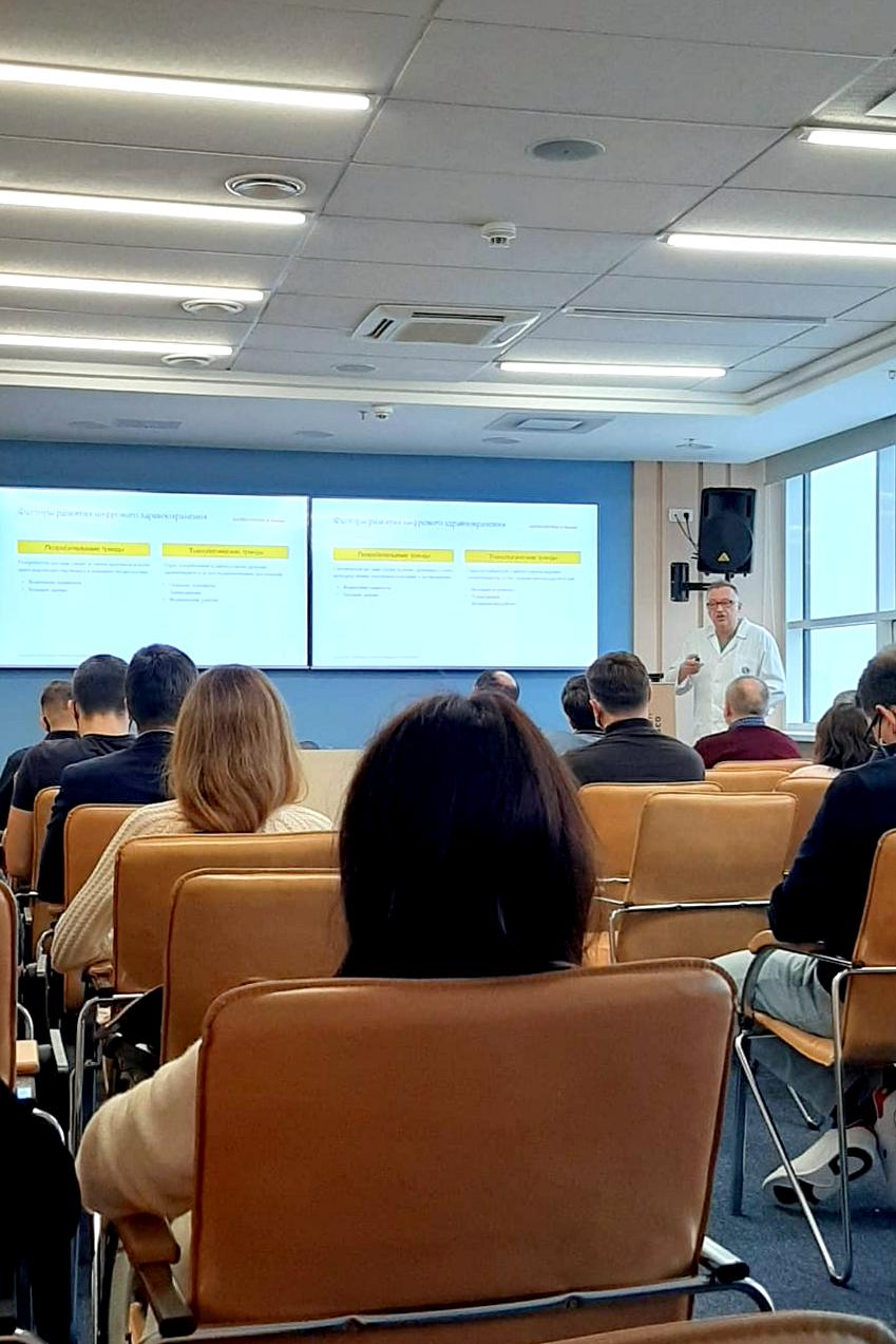 В рамках мероприятия слушателям были продемонстрированы технологические решения в клинике, в частности совместные проекты Центра Алмазова с Холдингом «Швабе» (умная палата и телемедицинская стойка).