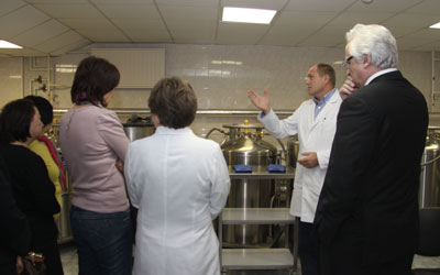 Кроме того, для гостей была проведена специальная экскурсия по Центру Алмазова. В числе прочего делегация посетила биобанк, Институт молекулярной биологии и генетики, отделение рентгенэндоваскулярной хирургии, а также отделение анестезиологии, реанимации и интенсивной терапии. В ходе экскурсии гостей поприветствовали главный врач Станции переливания крови С. В. Сидоркевич и заведующий НИЛ острого коронарного синдрома А. Н. Яковлев.