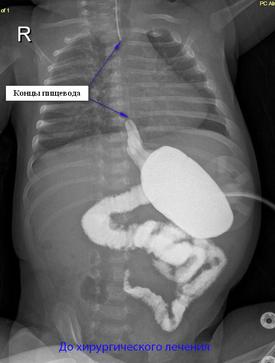 В Перинатальном центре Национального медицинского исследовательского центра имени В. А. Алмазова опытные врачи успешно помогают детям с различными патологиями, имея в распоряжении современное оборудование. Поэтому рожала петербурженка именно здесь. После родов врачи смогли провести обследование, которое показало, что у девочки очень редкая форма атрезии — бессвищевая (около 5 % от всех случаев атрезий). Атрезия пищевода — это тяжелый порок развития, при котором верхний и нижний сегменты пищевода разобщены и заканчиваются либо слепо, либо сообщаются с трахеей. При бессвищевой форме нижний сегмент пищевода очень маленький и ни к чему не прикреплен. По сути два конца пищевода не соединены между собой, а расстояние между ними порой настолько велико, что стянуть их невозможно. У данной пациентки — это расстояние составляло 5 грудных позвонков.