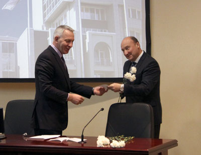 Заседание Ученого совета началось с награждения и вручения аттестатов и диплома сотрудникам Федерального медицинского исследовательского центра им. В. А. Алмазова. Аттестат профессора по специальности «кардиология» был вручен Недошивину Александру Олеговичу. Аттестат доцента по специальности «анестезиология и реаниматология» — Баутину Андрею Евгеньевичу. Козловой Светлане Николаевне был вручен диплом доктора медицинских наук.