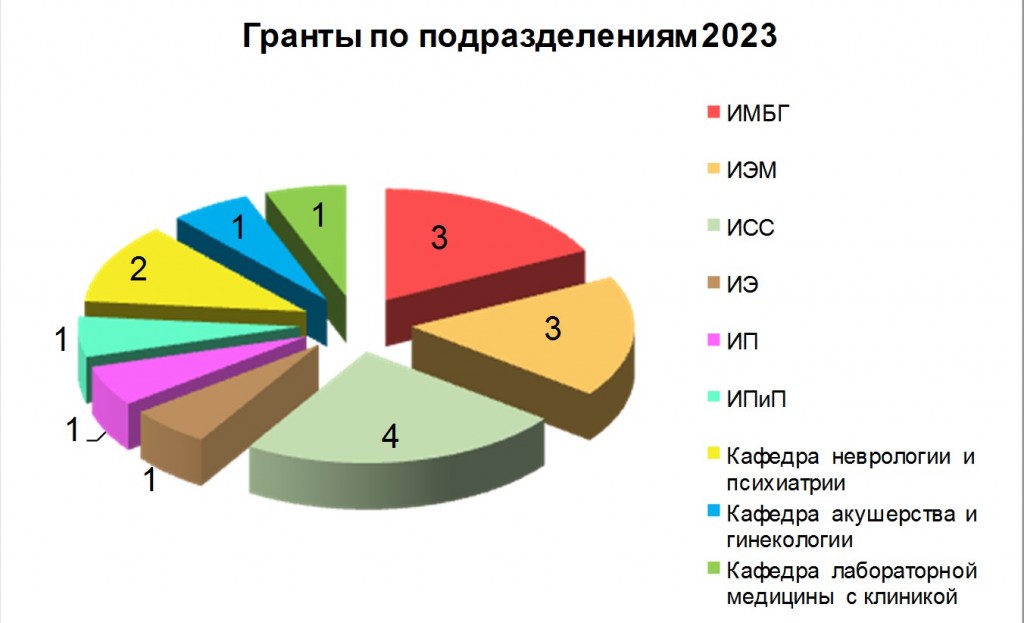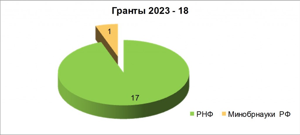 В 2023 году научные исследования проводились по 20 грантам, из них: