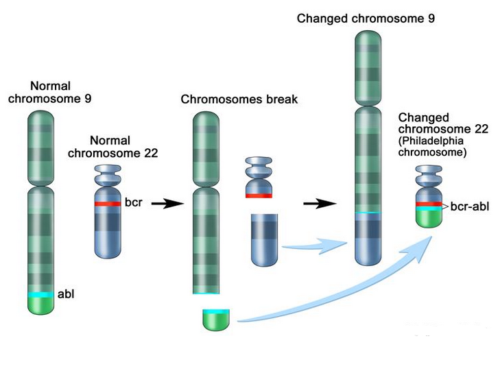 Хронический миелолейкоз (ХМЛ) — уникальное моногенное онкогематологическое заболевание, в основе патогенеза которого лежит образование химерного гена BCR/ABL в гемопоэтических клетках. При этом ген BCR/ABL формируется в результате спонтанной хромосомной мутации: перемещения части генетического материала с 9 на 22 хромосому — t (9;22)(q34;q11). Постоянная тирозинкиназная активность BCR/ABL запускает деление клетки и стимулирует ее выживание, что приводит к образованию злокачественного клона. Клинически ХМЛ проявляется изменениями в анализах крови и костного мозга, увеличением размеров печени и селезенки, а также рядом неспецифических симптомов.