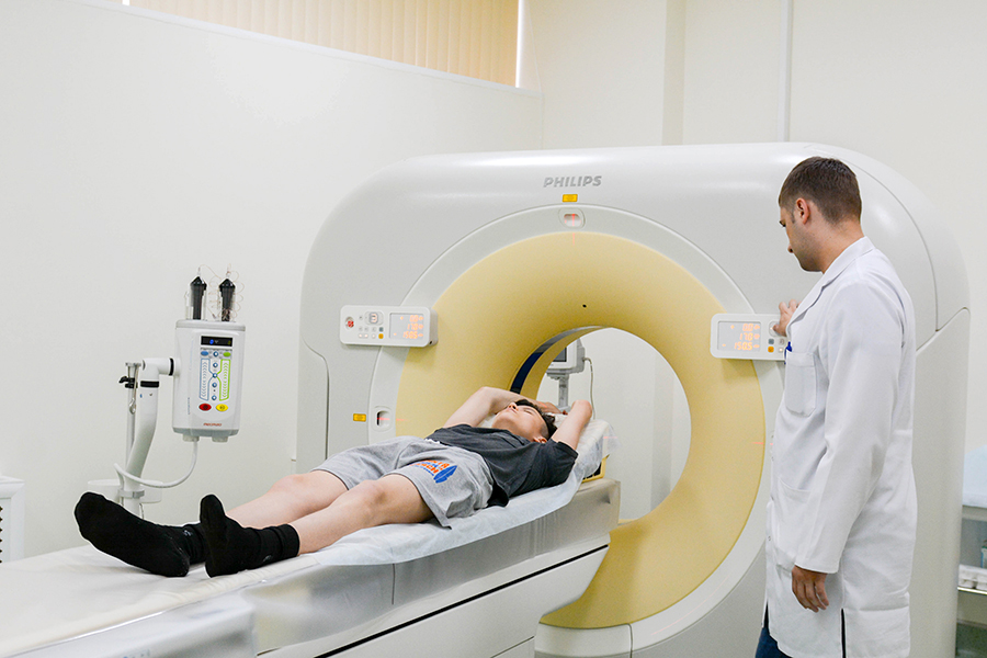 Кабинет компьютерной томографии в Детском-лечебно реабилитационном комплексе оснащен современным компьютерным томографом Ingenuity Elite (128 срезов, Philips). К преимуществам данного томографа можно отнести высокую скорость сканирования, кардиосинхронизацию (все это позволяет проводить исследования больших сосудистых регионов за одно сканирование), высокое качество получаемых изображений, возможность выполнения динамических исследований и построения трехмерных реконструкций, большая апертура и стол томографа позволяют выполнять исследования крупным пациентам с массой тела до 200 кг. Помимо этого, данный томограф оснащен возможностью выполнения низкодозной МСКТ (что снижает лучевую нагрузку на пациента – особенно ценно в педиатрической диагностике).