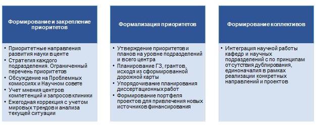 − создание инфраструктуры и условий, отвечающих современным принципам организации научной и инновационной деятельности, основанных на лучших российских и мировых практиках, для проведения научных исследований и разработок, внедрения наукоемких технологий;