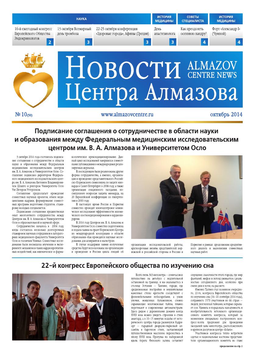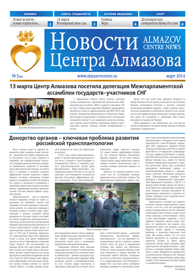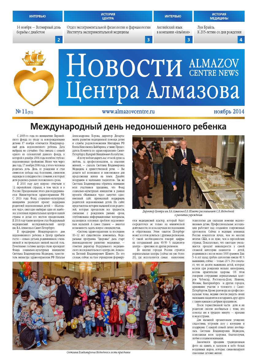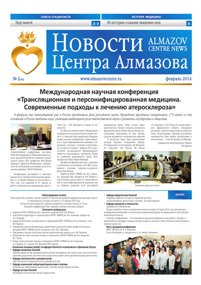 Выпуски газеты «Новости Центра Алмазова» за 2014 год