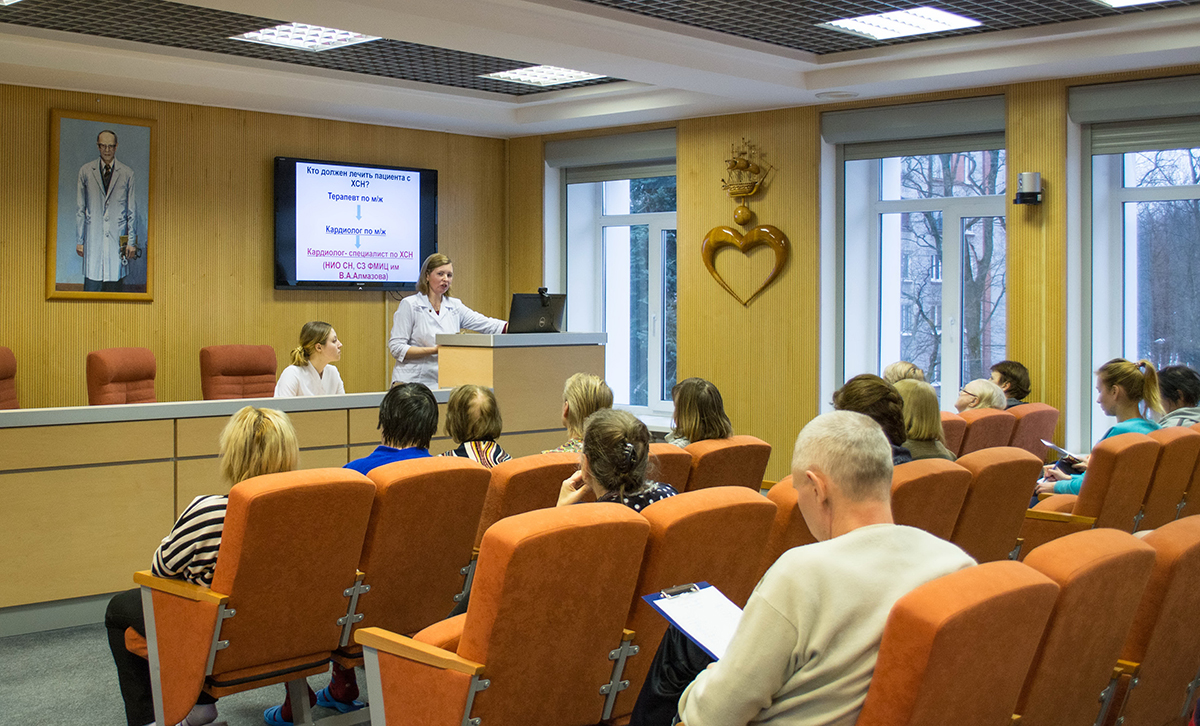С момента основания в 2001 году научно-исследовательского отдела сердечной недостаточности (НИО СН) в Национальном медицинском исследовательском центре имени В. А. Алмазова сотрудники отдела 2 раза в месяц проводят школы для больных ХСН. Только в период с декабря 2008 по май 2009 года школу посетили 350 больных.
